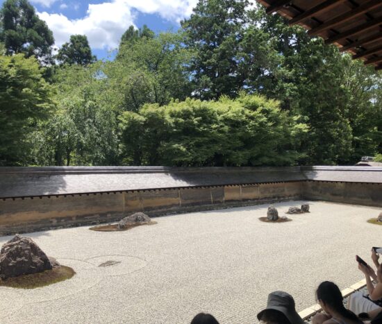 まぁまぁ。枯山水の前に腰掛けましょうか。どっこいしょ。